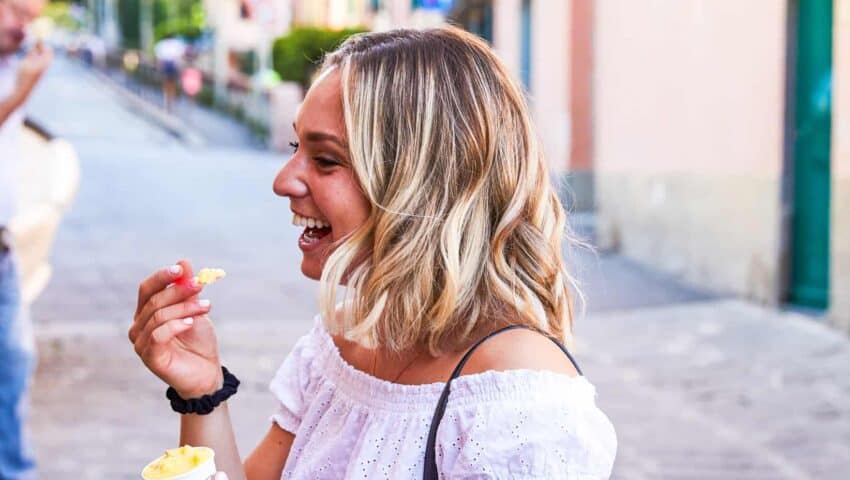An Atlantis student enjoying ice cream on a program excursion (Genoa, Italy, 2019).